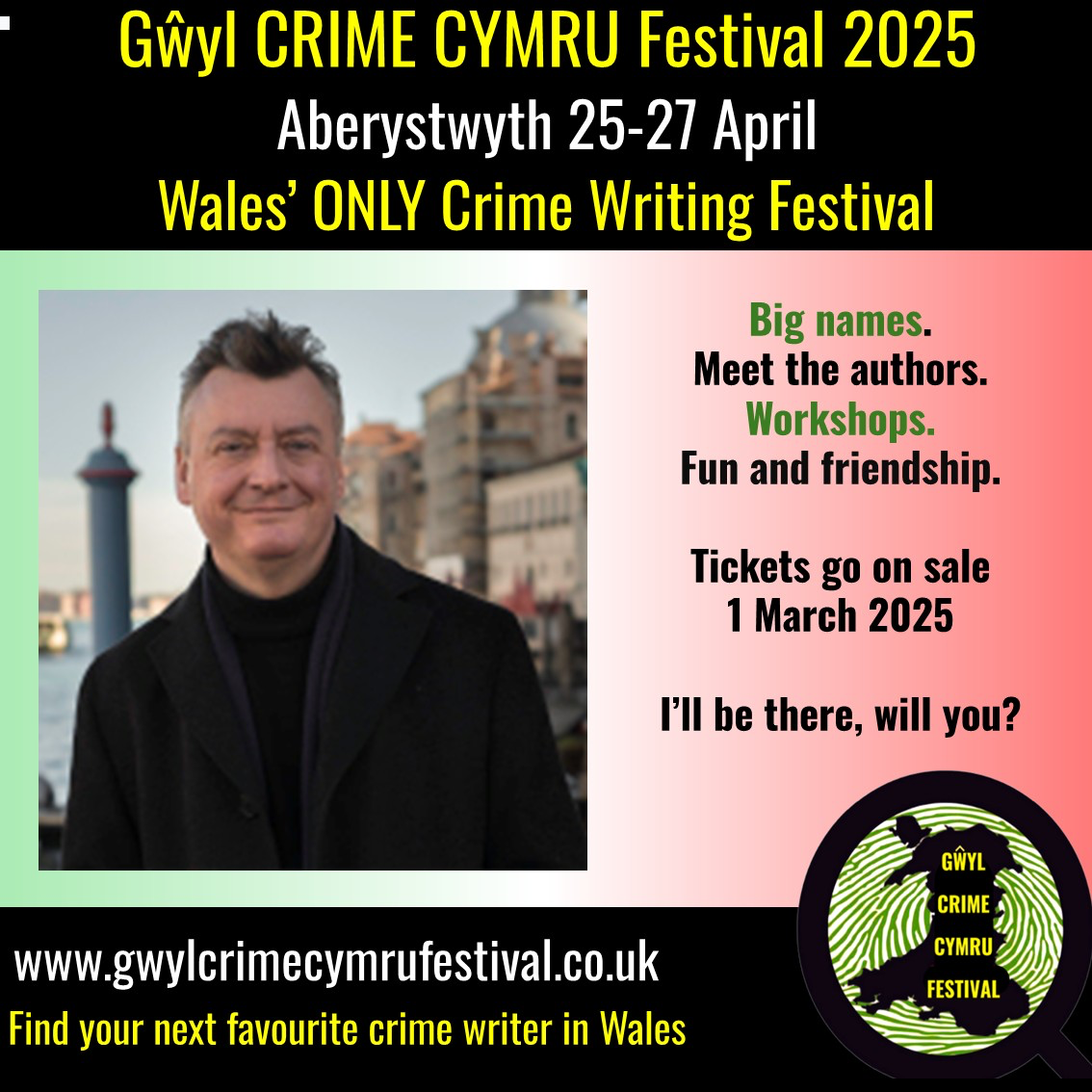 At 7pm on Friday 14th, David will be in conversation with Ian Rankin at La Rivista Restaurant, Ca’ Pisani. You’ll definitely need to reserve for this one (at €30 per person), so write to ristorazione@capisanihotel.it .