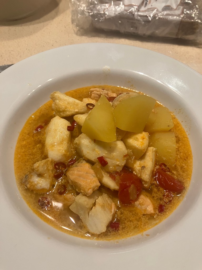 The trouble with that is that it left one spare fillet of San Pietro which I could probably do something with at a later date, but it’s a slightly annoying amount of fish to have left over. Also, reheating the stew risked the fish falling apart.